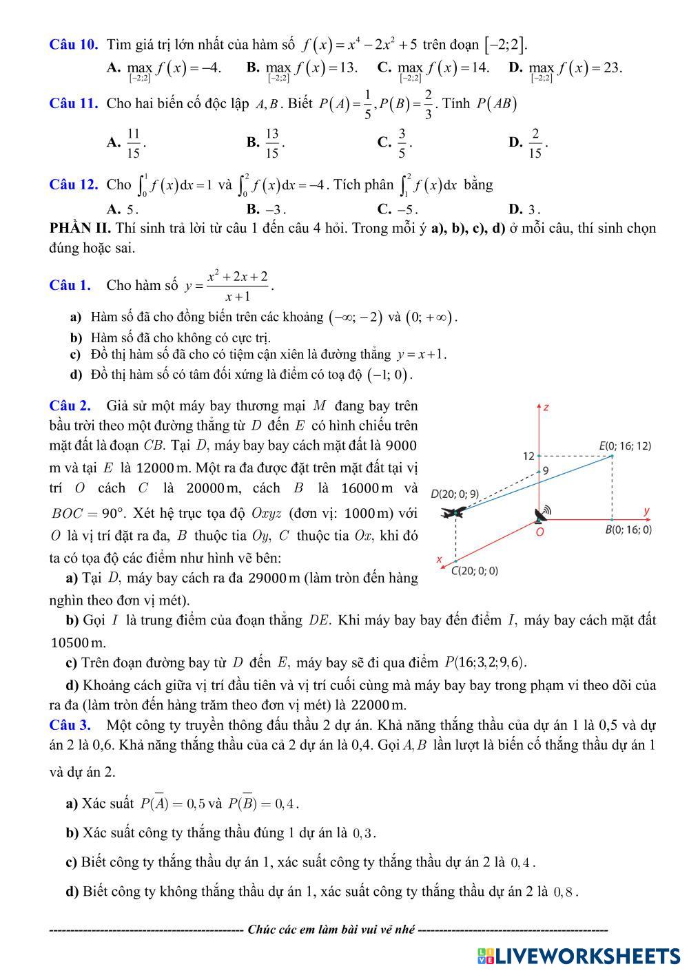 Created byLê Thị Hồng Vân คณิตศาสตร์ มัธยมศึกษาตอนปลาย ม.6 (มัธยมศึกษาปีที่ 6) พีชคณิต Vietnamese คำแนะนำของผู้เขียน Các em làm đè luyện tập nhé My Google Classroom Courses × 0 classes selected (0 students total) Quick Access Select all classes (0 classes) All Classes Loading courses... ยกเลิก Share Share to selected Course __COURSE_NAME__ __STUDENT_NAME__ (__STUDENT_EMAIL__) ĐỀ THI THỬ THPT 03 ดาวน์โหลด Worksheet Validation Check my answers Emails my answers to my teacher ชื่อเต็ม Group/level School subject Teacher's email or key code Close ส่งข้อมูล Validating worksheet... (12) Your answers have been sent to your teacher. Good luck! OK We encountered an error submitting your answers. Please try again. OK โฆษณา | ใช้งานแบบไม่มีโฆษณา Created byLê Thị Hồng Vân คณิตศาสตร์ มัธยมศึกษาตอนปลาย ม.6 (มัธยมศึกษาปีที่ 6) พีชคณิต Vietnamese คำแนะนำของผู้เขียน Các em làm đè luyện tập nhé สำรวจแผ่นงาน revision Math 12th grade revision Algebra - Math . ĐỀ THI THỬ THPT 02 Math 12th grade ĐỀ THI THỬ THPT 02 Algebra - Math Các em làm đề luyện tập nhé ĐỀ THI THỬ TNTHPT 1 Math 12th grade ĐỀ THI THỬ TNTHPT 1 Algebra - Math Các em làm đề luyện tập nhé Формулы первообразных Math 12th grade Формулы первообразных Algebra - Math Верные ответы отметьте галочками