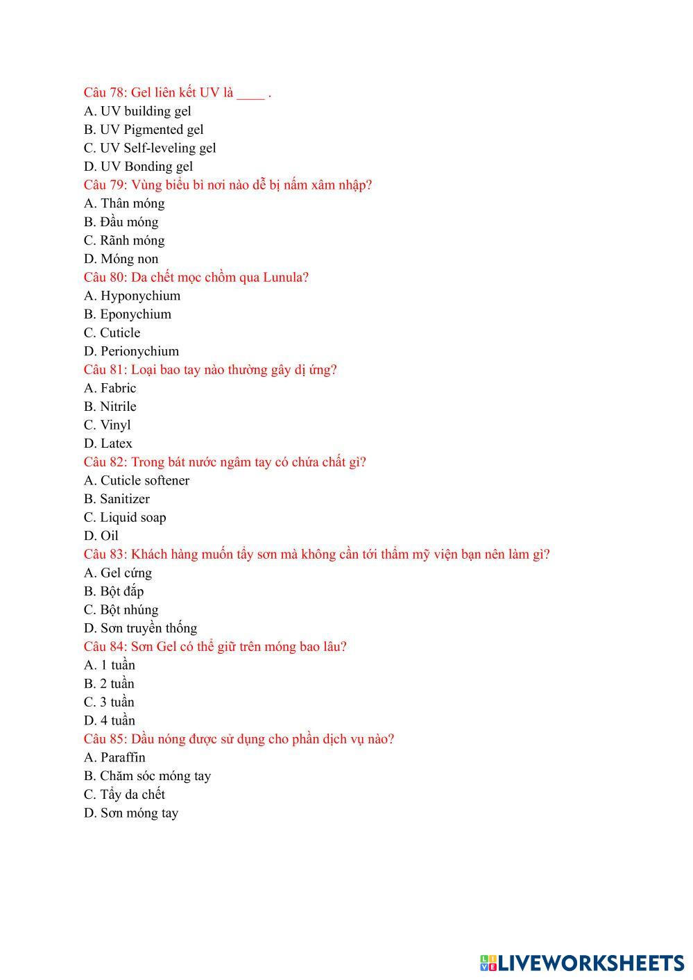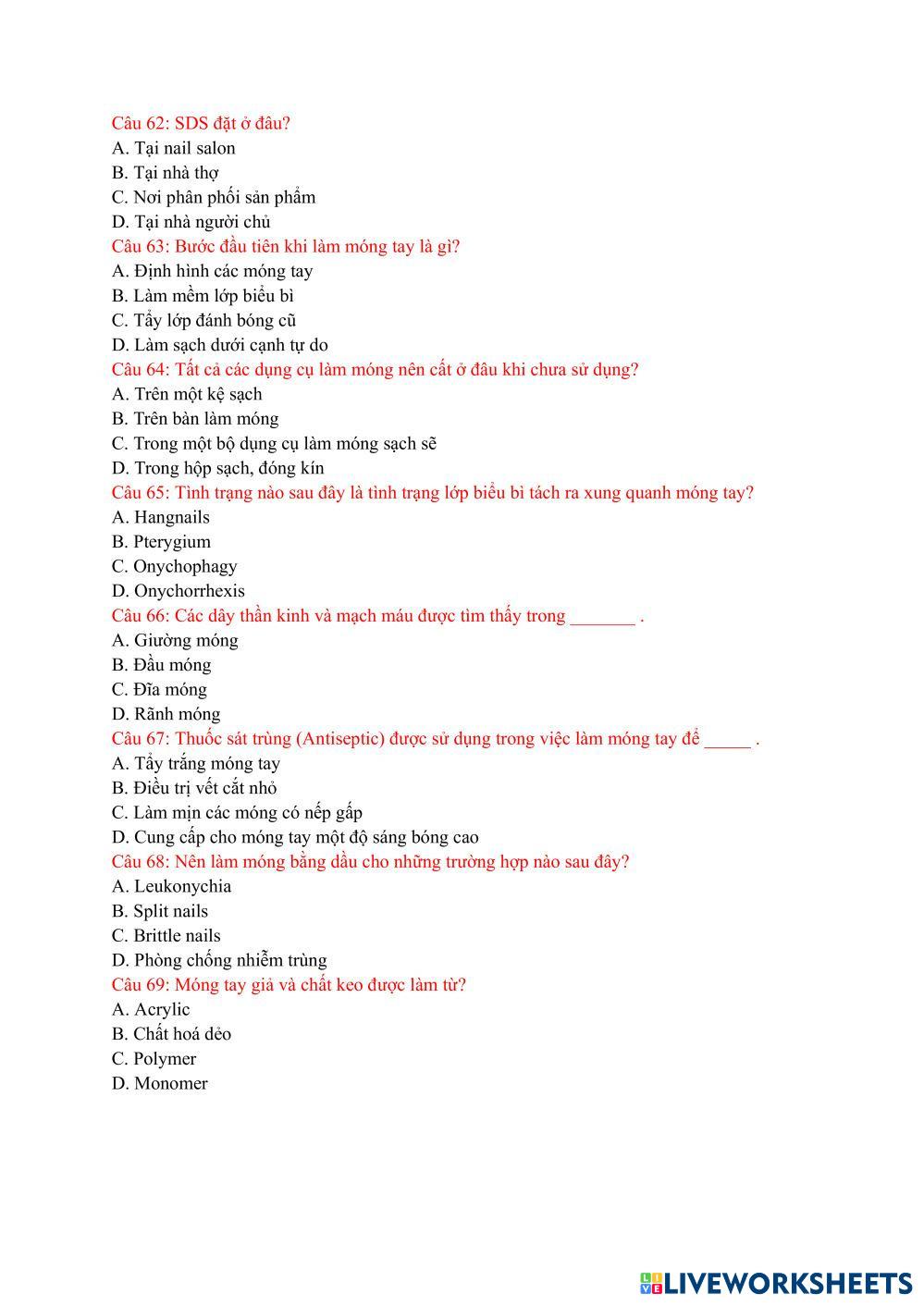 (3) ĐỀ THI LÝ THUYẾT NAIL.