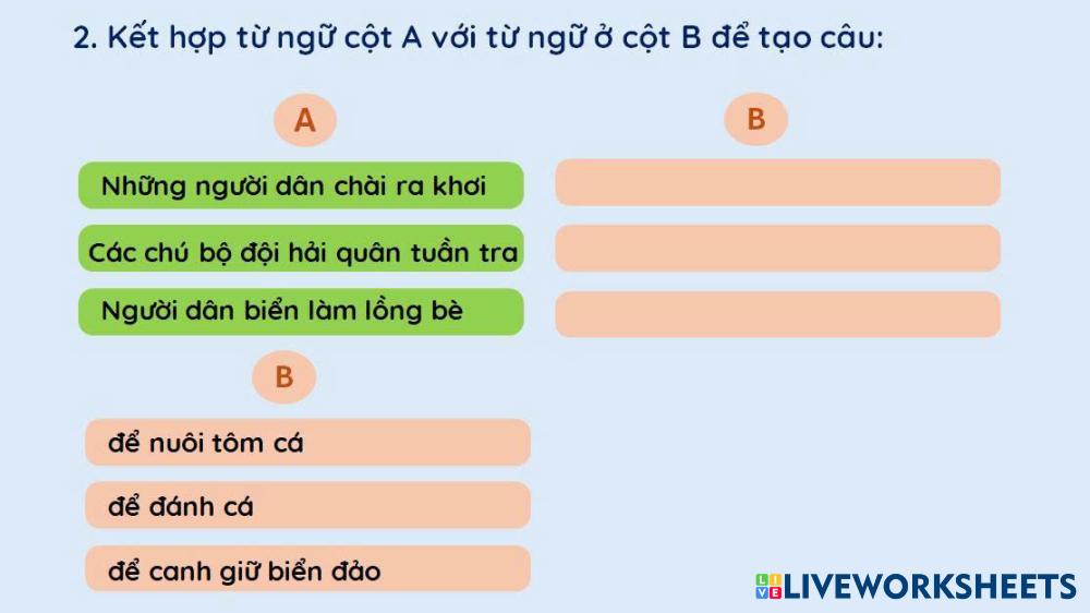 Học sinh đọc và kết hợp cột A với cột B tạo thành từ có nghĩa