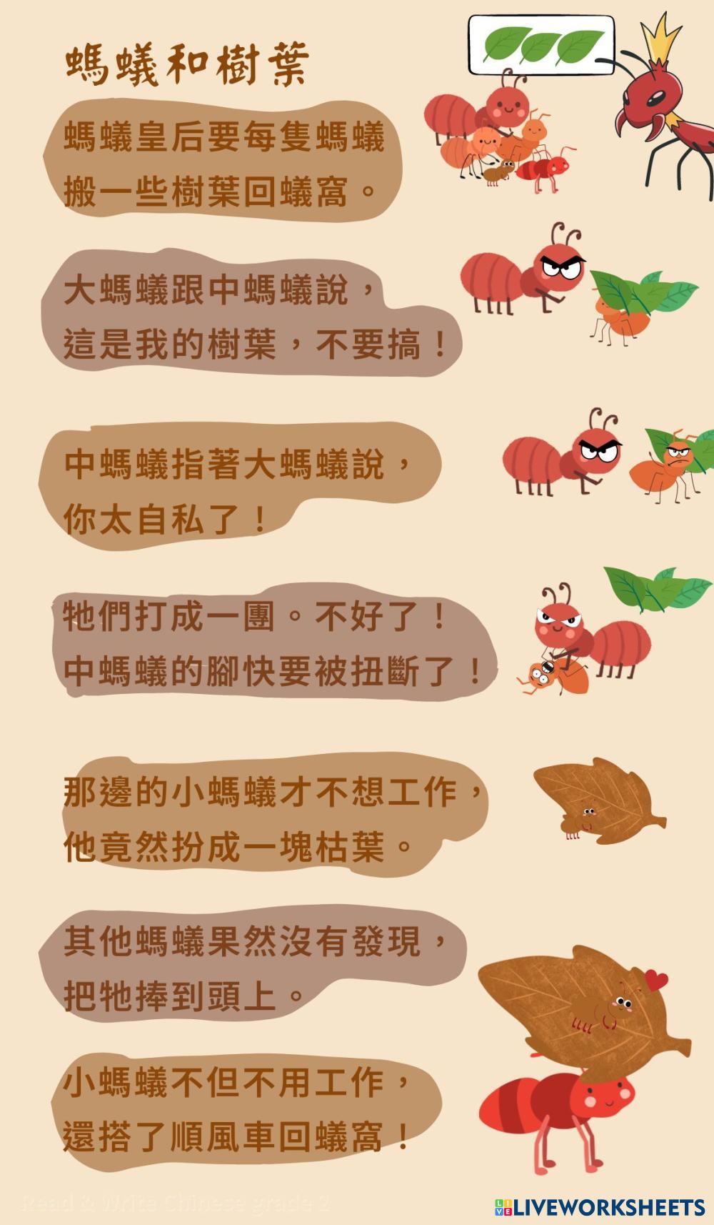 Created by DonnaChan Chinese Language (CL) Choose the right answer Age 6+ level: Primary 2 Chinese Author's Instructions My Google Classroom Courses × 0 classes selected (0 students total) Quick Access Select all classes (0 classes) All Classes Loading courses... ยกเลิก Share Share to selected Course __COURSE_NAME__ __STUDENT_NAME__ (__STUDENT_EMAIL__) 螞蟻和樹葉 ดาวน์โหลด Worksheet Validation Check my answers Emails my answers to my teacher ชื่อเต็ม Group/level School subject Teacher's email or key code Close ส่งข้อมูล Validating worksheet... (12) Your answers have been sent to your teacher. Good luck! OK We encountered an error submitting your answers. Please try again. OK โฆษณา | ใช้งานแบบไม่มีโฆษณา Created by DonnaChan Chinese Language (CL) Choose the right answer Age 6+ level: Primary 2 Chinese Author's Instructions