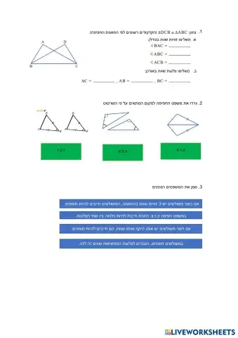 חפיפת משולשים לכיתה ח -שקד ישראל - משימה 2