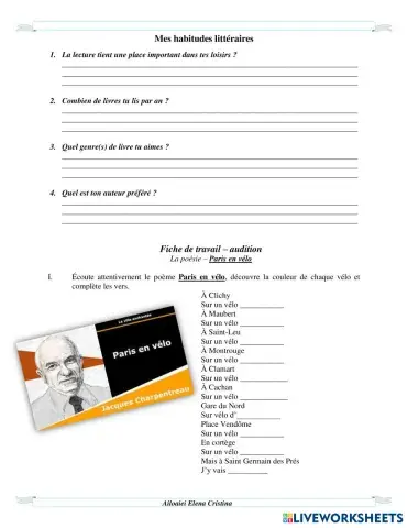 • Français Langue Étrangère (FLE) Mes habituedes litteraires_Jacques Charpentreau_Paris en velo French Level A2