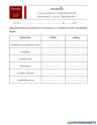 ใบกิจกรรม 2.3 ระบบหายใจ