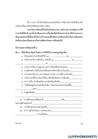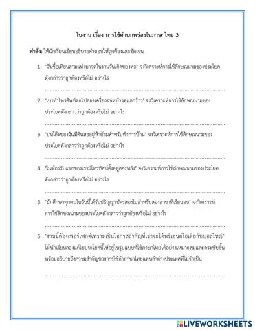ใบงาน เรื่อง การใช้คำบกพร่องในภาษาไทย 3