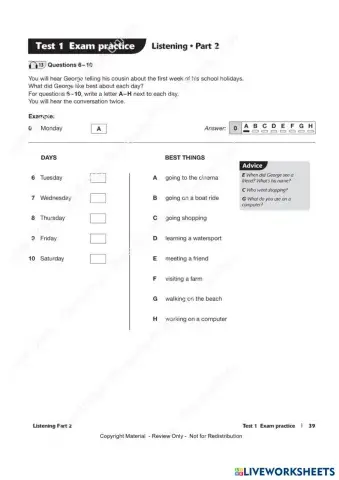 HOMEWORK UNIT 12 - LISTENING