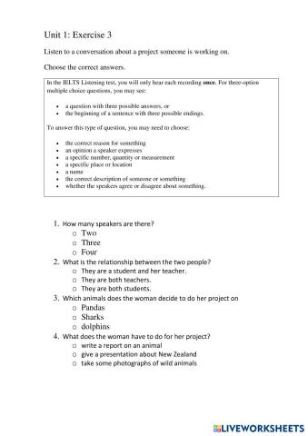 • English as a Second Language (ESL) IELTS Headstarters - Grammar 2 - Unit 6- Exercise 1 English intermediate