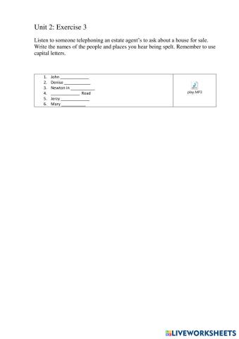 • English as a Second Language (ESL) IE0, Unit 2, Listening and Speaking, Exercise 3 English Pre-intermediate