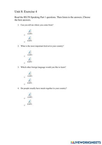 • English as a Second Language (ESL) IE0, Unit 8, Listening and Speaking, Exercise 3 English Pre-intermediate
