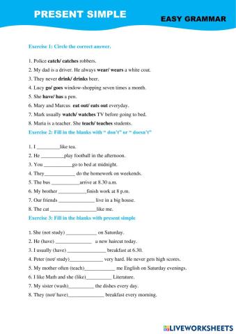 • English as a Second Language (ESL) IE0, Unit 3, Grammar and Vocabulary, Exercise 4 English Pre-intermediate