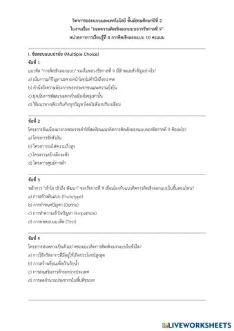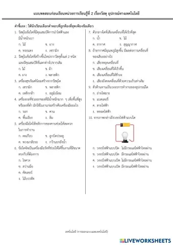 • การออกแบบและเทคโนโลยี ม.2 แบบทดสอบหน่วยการเรียนรู้ที่ 2 เรื่องวัสดุ อุปกรณ์ทางเทคโนโลยี Thai Level 2