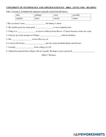 L1 U2 L2 vocabulary sentences