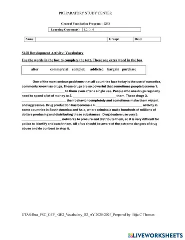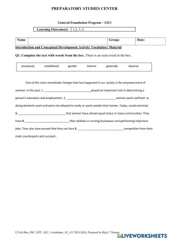 GE3 Reading U1 R2 vocabulary