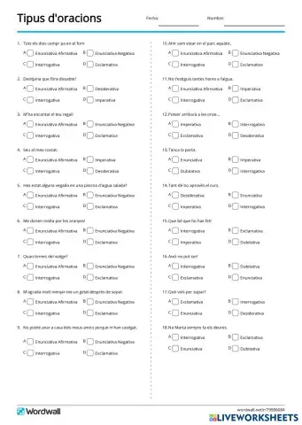 Tipus d'oracions