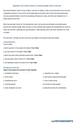 • English as a Foreign Language (EFL) From Dublin Streets to Global Stages: Bono’s Journey Spanish Level A2