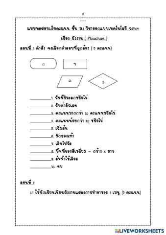 แบบทดสอบเก็บคะแนนผังงาน เทอม 2 ชุด B