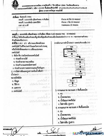 ข้อสอบกลางภาค ออกแบบเทคโนโลยี ม.1