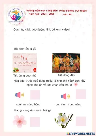 PHIẾU BÀI TẬP TRỰC TUYẾN KHỐI BÉ 13/02/2025