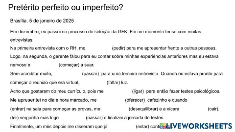 Pretérito perfeito ou imperfeito 1