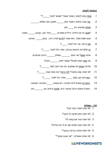 יש/אין /היה/הייתה/היו