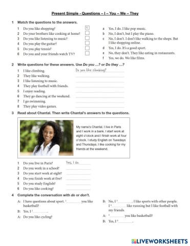 • English as a Second Language (ESL) Present Simple - Questions – I – You – We – They English Beginner