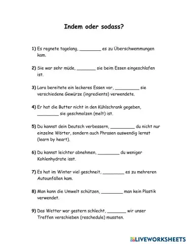 indem, sodass