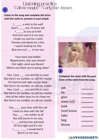 • english Listening practice with songs (present and past simple) Spanish elementary- pre intermediate