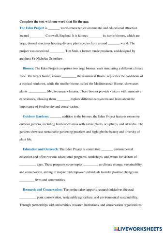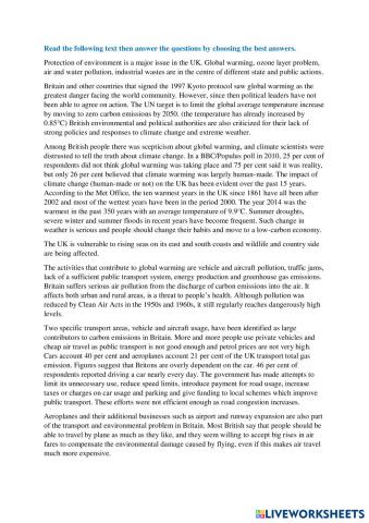 • English as a Second Language (ESL) Reading and Use of English(Environmental issues UK) English Upper intermediate- Advanced