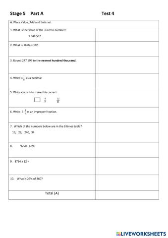 Y5 CLOSING GAP TEST 6 PART A
