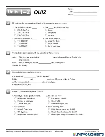 • English as a Second Language (ESL) Guess What! 1 Unit 2 Vocabulary Worksheet English PRE INTERMEDIATE