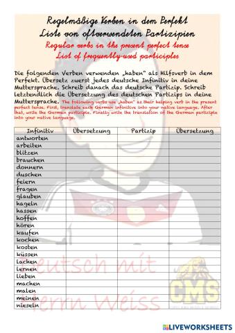 002 Das Perfekt mit regelmäßigen Verben - Liste