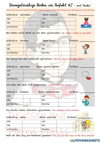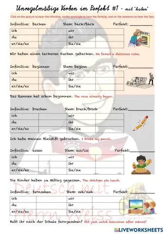 • Deutsch als Fremdsprache 081 Regelmäßige, ieren, und untrennbare Verben in dem Perfekt English A1-A2