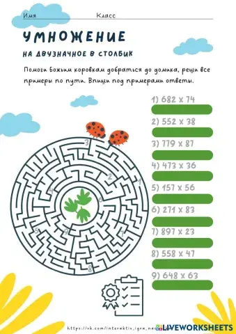 Умножение на двузначное число в столбик