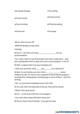 • English as a Second Language (ESL) future perfect future continuous transcript English upper intermediate