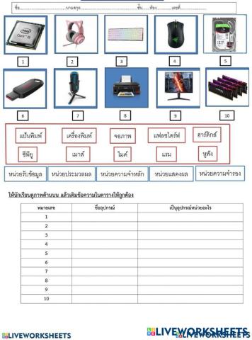 ใบงาน ส่วนประกอบของคอมพิวเตอร์ ป.4