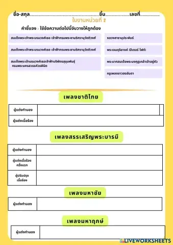 ใบงานเรื่องสังคมไทยกับดนตรีสากล(ประวัติเพลงสำคัญ)