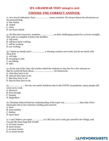 IFL GRAMMAR TEST 2024(11-20)