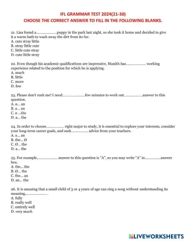 IFL GRAMMAR TEST 2024(21-30)