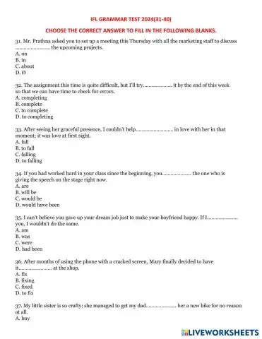 IFL GRAMMAR TEST 2024(31-40)