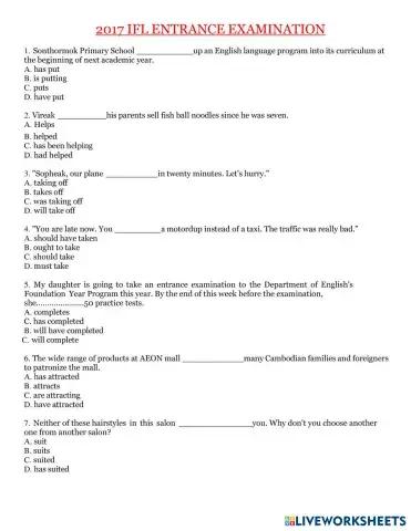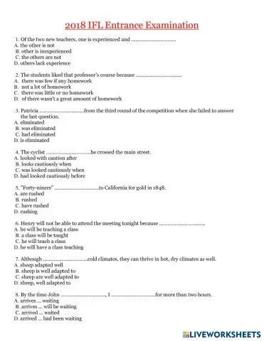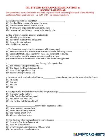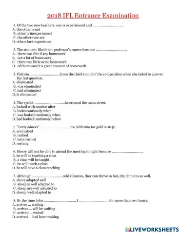 IFL GRAMMAR TEST 2018(1-40)