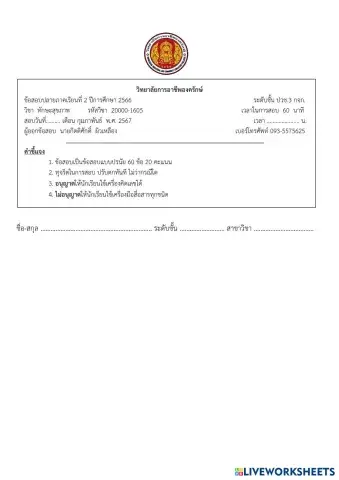 แบบทดสอบวัดผลปลายภาคเรียน สังคมไทยในยุคดิจิทัล 30000-1501