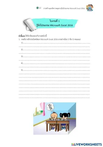 ใบงาน เรื่อง รู้จักโปรแกรม Microsoft Excel 2016