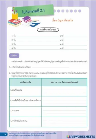 ใบงาน เรื่อง ปัญหาคืออะไร