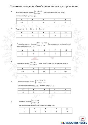 Практичні завдання «Розв’язання систем двох рівняннь»