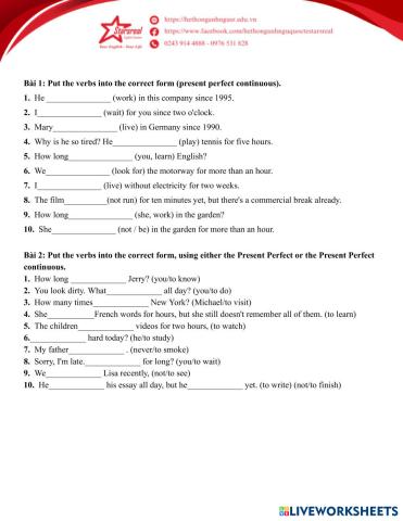 • English as a Second Language (ESL) Hiện tại hoàn thành vs hiện tại hoàn thành tiếp diễn English Level 11