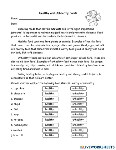 Healthy and Unhealthy Foods