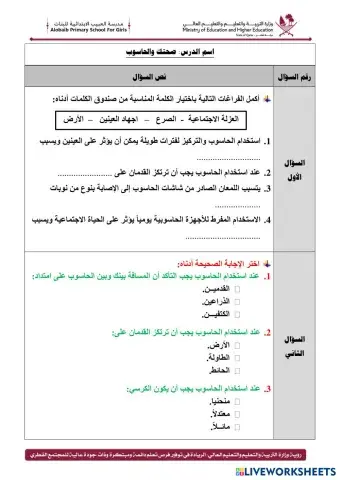 ورقة عمل 2 للصف الرابع