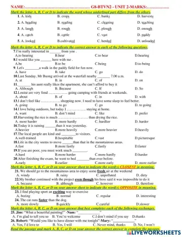 MONOPHTHONG(NGUYÊN ÂM ĐƠN)-TEST