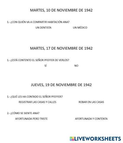 El diario de Ana Frank - 10, 17, 19 de noviembre de 1942