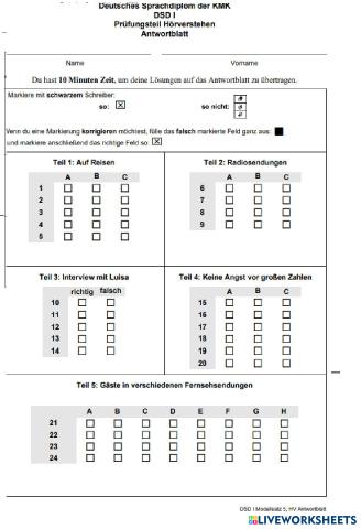 DSD1 - HV - Modellsatz 5 - Antwortblatt