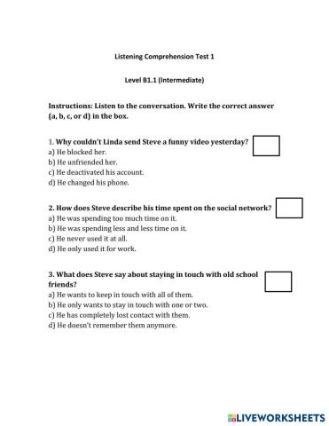 Listening Assessment 1